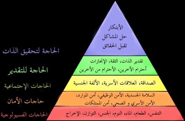 *هرم ماسلو: نظرية أطلقها أبراهام ماسلو (1908-1970)، عالم نفس أمريكي شهير. رتّب بموجبها الاحتياجات الإنسانية في تسلسل هرمي، مع الاحتياجات الفسيولوجية (البقاء) في الأسفل، والاحتياجات الأكثر إبداعًا وتوجهًا فكريًا لتحقيق الذات في الأعلى.