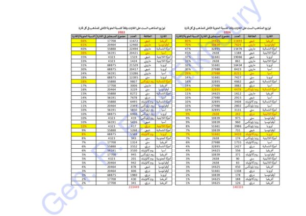 – أوقيانوسيا: 70% موارنة عام 2026، مقابل 61% عام 2022.