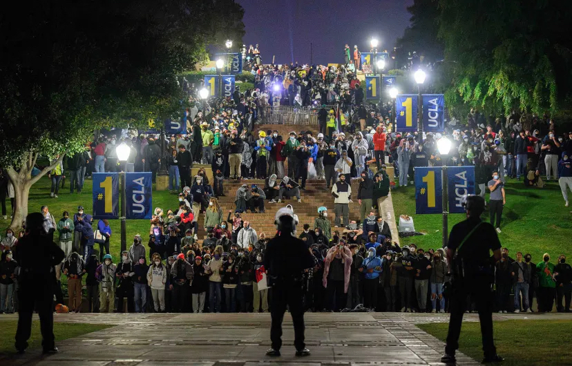 تشير ميلشتاين إلى أنّها في مراجعتها للعديد من الصور الأرشيفية للاحتجاجات الجامعية خلال الستّينيات والثمانينيات، وجدت أنّ الصور في الجامعات اليوم تعكس مشاهد الجهد العالي، ولحظات الهدوء والوجبات المشتركة والصلاة، والتصعيد الذي حدث في العديد من الأماكن مع وصول الشرطة والمتظاهرين المناهضين. وبينما كانت الحرب الخارجية التي احتجّ عليها الطلاب في الستّينيات والسبعينيات من القرن الماضي هي الحرب التي هدّدت حياتهم حتى مع الأعمال الانتقامية، فإنّ ما دفع الطلاب إلى المخاطرة بسلامتهم والتحاقهم العلمي ووظائفهم المستقبلية في مئات الجامعات هذا الربيع هو مقتل آخرين. فقد قتلت إسرائيل 34 ألف فلسطيني في قطاع غزة منذ أن شنّت عملياتها الانتقامية ردّاً على هجوم حماس في 7 أكتوبر الذي أسفر عن مقتل 1,200 شخص وجرح 1,200 آخرين واحتجاز 240 شخصاً كرهائن.