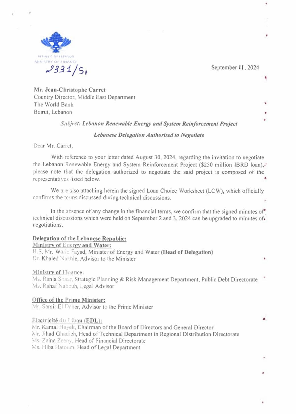 يكشف مصدر رسمي معني لـ”أساس” عن قرض بـ250 مليون دولار للطاقة المتجدّدة من البنك الدولي