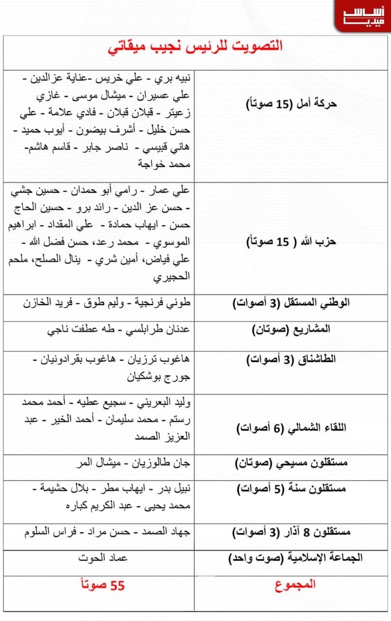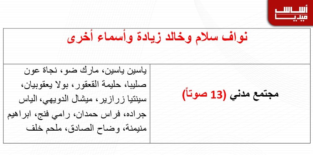 أما دولة الـ”لا أحد” فقد يجمع 41 صوتاً، هي مجموع أصوات “التيار الوطني الحرّ” و”القوات” و5 مستقلّين، كما تبيّن الجداول، غير النهائية، أدناه.