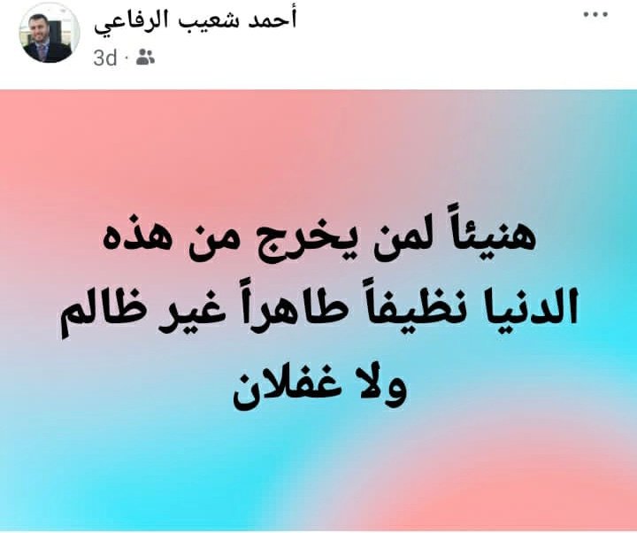 اللافت أنّ الشيخ الرفاعي كتب قبل اختفائه ثلاثة تعليقات متتالية في اليوم نفسه تحدّثت عن الموت وعلاقة الإنسان بالرحيل، إذ قال في أحدها: “هنيئاً لمن يخرج من هذه الدنيا نظيفاً طاهراً غير ظالم ولا غفلان”.